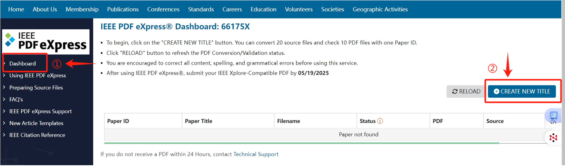 Step 4: Access IEEE PDF eXpress (https://ieee-pdf-express.org/), sign up or log in using the conference ID " 66175X ". Remember to verify your email address and update the user profile if you are signing up for a new account.